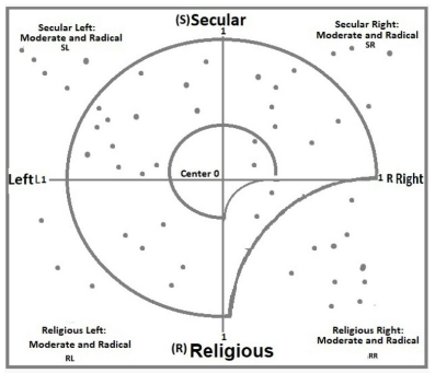 Ho descritto gli attuali gruppi politici e le organizzazioni iraniane in una matrice biplot/multidimensionale: