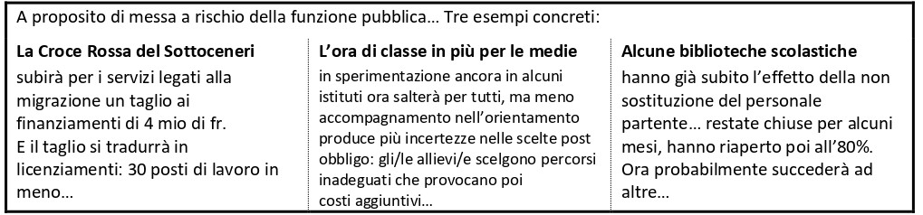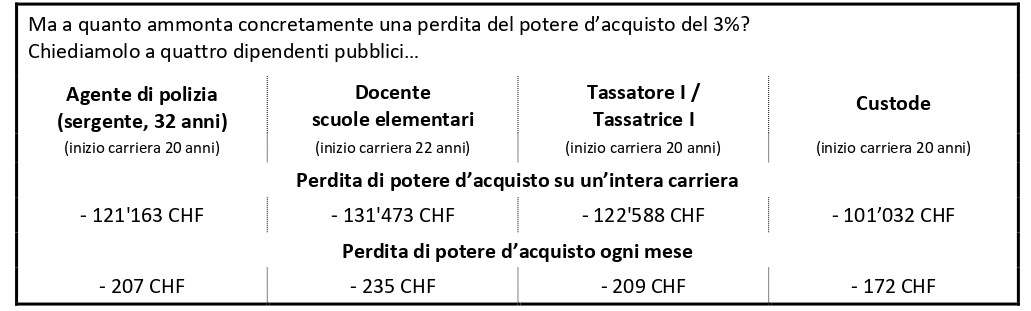 - rivendica un adeguamento strutturale del 3% dei salari cantonali, a parziale compensazione del rincaro non concesso negli ultimi anni;