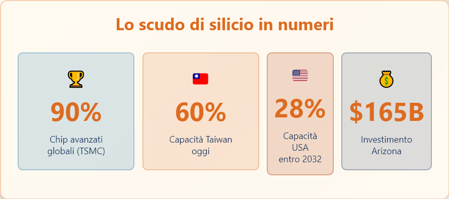 Nel 2020 il politologo taiwanese Tsai Ming-yen ha coniato l’espressione “scudo di silicio” per descrivere la posizione strategica di Taiwan. Il controllo quasi monopolistico dell’isola sulla produzione di semiconduttori avanzati la rendeva troppo preziosa per essere attaccata dalla Cina e troppo importante per essere abbandonata dagli Stati Uniti. TSMC, che produce oltre il 90% dei chip più sofisticati al mondo, rappresentava la garanzia materiale di questa protezione. Il ragionamento conteneva però un’ambiguità fondamentale: quella posizione di forza dipendeva interamente dalla volontà delle grandi potenze di considerare Taiwan indispensabile. E questa percezione può cambiare rapidamente, trasformando lo scudo in una trappola.